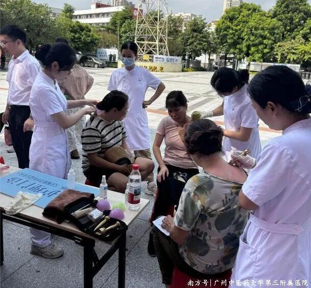 行径现场,我院守护团队带来的中医特质疗法体验成为一大亮点。刮痧、火龙罐、艾灸、经络推拿、耳穴压豆、杵针等丰富多彩的中医符合技艺,让住户们躬行体验到了中医药在防病治病、养生保健方面的特有功效,劝诱无数住户藏身列队体验。